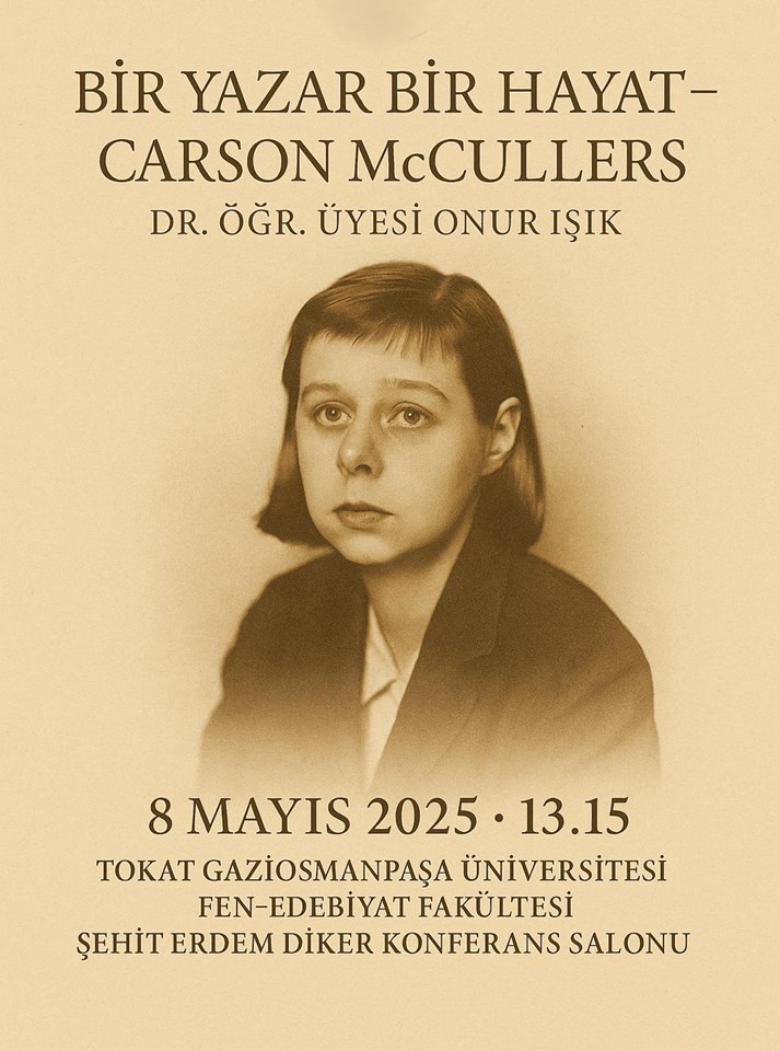 “Bir Yazar Bir Hayat” seminer serisi kapsamında Dr. Öğr. Üyesi Onur Işık, Amerikan edebiyatının Güney Gotik ustası Carson McCullers’ı tanıtan bir sunum gerçekleştirdi. McCullers’ın yalnızlık, sevgi ve toplumsal dışlanmışlık temalarını işleyen eserleri ile hayat hikâyesinin ele alındığı etkinlik, katılımcılara yazarın edebi mirasını derinlemesine keşfetme fırsatı sundu.