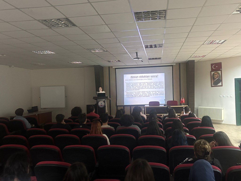 Bugün 1. sınıf öğrencilerimiz için oryantasyon toplantısı gerçekleştirildi. Toplantıda üniversitemizin sunduğu akademik ve sosyal imkânlar tanıtıldı, ders programı ve bölüm hakkında genel bilgiler paylaşıldı. Öğrencilerin üniversite yaşamına daha kolay uyum sağlamaları amacıyla idari birimler ve danışmanlık hizmetleri hakkında bilgilendirme yapıldı. Ayrıca, öğrencilerimizin soruları yanıtlanarak yeni döneme motivasyonla başlamaları sağlandı.